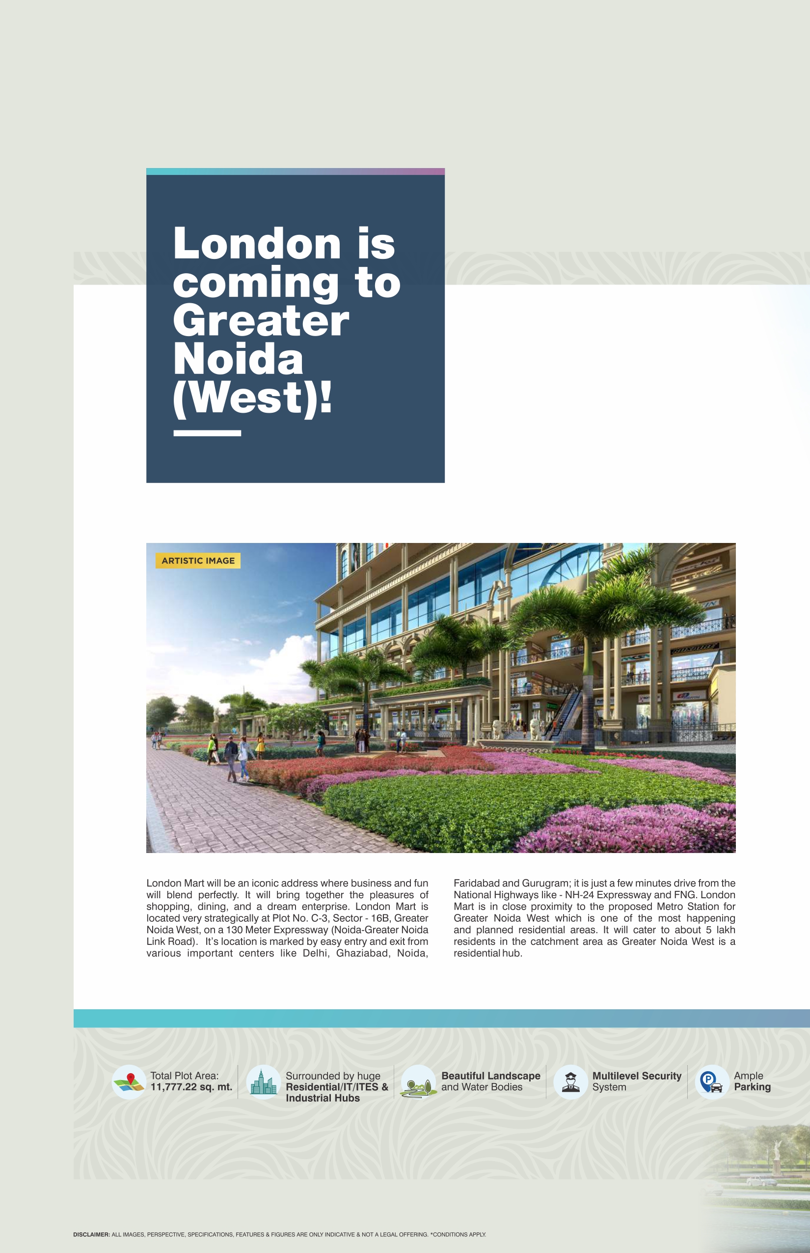 London Mart is a prominent commercial real estate project located in Buddha Chowk, Sector 16B, Greater Noida West (Noida Extension), Uttar Pradesh, India. Developed by Mart Promoters in collaboration with Aims Group, Galaxy Group, and Angel India, it is designed to be a world-class, theme-based high-street retail and commercial hub, blending shopping, dining, entertainment, and office spaces. Below is a comprehensive overview of London Mart, including investment details and benefits, based on available information.